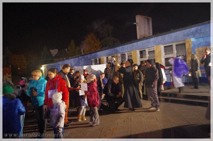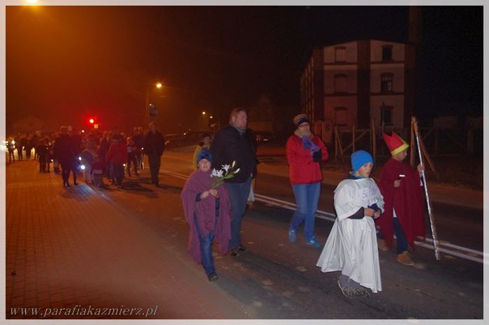 W sobotę 31.10.2015 r. po raz drugi ulicami Kaźmierza przeszedł „Korowód Świętych”, który dla katolików jest świetną alternatywą dla Halloween. Zbiórka uczestników miała miejsce na dziedzińcu szkoły podstawowej. Tam na przybyłych czekały słodycze i smaczne rogaliki. Przed szkołą zrobiło się bardzo kolorowo, ponieważ dzieci, które przybyły na miejsce zbiórki ze swoimi opiekunami poprzebierane były za ulubionych świętych głównie za swoich patronów. Następnie kolorowy korowód przeszedł ze śpiewem na ustach ulicami Kaźmierza do naszej świątyni. Podczas marszu jego uczestnikom przygrywała orkiestra dęta. W kościele odmówiona została litania do wszystkich świętych a po niej wszystkie dzieci ustawiły się do wspólnej pamiątkowej fotografii.