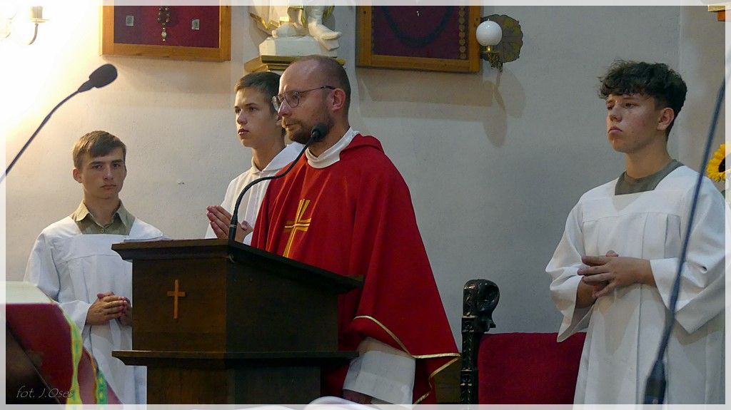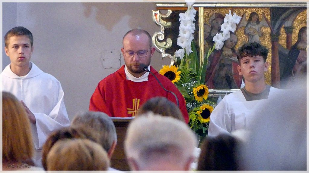 Dzisiejsza (24.08.2023) Msza św. o godz. 18.00 była ostatnią mszą odprawioną przez ks. Mateusza Szkudlarka w ramach Jego wikariuszowskiej posługi w naszej parafii. Po mszy była okazja do podziękowań drogiemu duszpasterzowi za jego owocną posługę. Dziękowali kapłanowi i życzyli wszystkiego najlepszego na nowej parafii pw. św. Józefa w Środzie Wlkp. między innymi przedstawiciele rady parafialnej, scholi parafialnej, róż różańcowych, sióstr urszulanek z Sokolnik Wielkich, służby liturgicznej i szkoły podstawowej w Kaźmierzu.