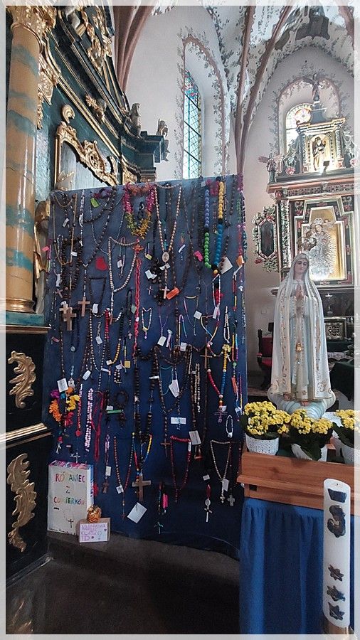 W październiku poświęconym szczególnie Matce Bożej uczniowie klas I-III wykonali w gronie rodzinnym różańce, które zostały wyeksponowane w Kościele. Wykonano 84 różańce. Pomysłowość i kreatywność rodzin była ogromna - czego to nie użyto do wykonania różańca. Od cukierków, po orzechy, skarby jesieni, koraliki miękkie i twarde, makarony, aż po aromatyczną kawę. Każda praca jest wyjątkowa i niepowtarzalna! W wykonanych pracach daje się zauważyć olbrzymi wkład i wiele serca naszych uczniów jak i rodziców. Widok zawieszonych różańców w kościele zachęcał do wzięcia w dłonie swojego różańca i podjęcia modlitwy różańcowej szczególnie teraz w październiku.