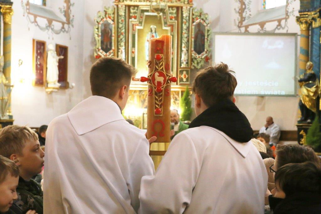 Podczas Mszy Świętej o godz. 10:45, sprawowanej przez ks. Mikołaja Konarskiego, wspólnie z dziećmi przeżywaliśmy Uroczystość Objawienia Pańskiego. Nawiązując do Ewangelii o Mędrcach ze Wschodu, Ksiądz Proboszcz zaprosił dzieci do żłóbka i ołtarza, przybliżając im postacie Trzech Króli. Troje chłopców z zaangażowaniem przeniosło figurki Kacpra, Melchiora i Baltazara do żłóbka - był to piękny i wzruszający znak drogi wiary prowadzącej do Chrystusa. Na zakończenie chłopcy zostali zaproszeni do rozważenia służby ministranckiej. Po Mszy Świętej kapłani udzielili dzieciom indywidualnego błogosławieństwa, a każde dziecko otrzymało list od papieża Leona jako podziękowanie za udział w roratach. Dziękujemy dzieciom i rodzicom za wspólne budowanie żywego Kościoła. Niech przykład Trzech Króli uczy nas podążania za światłem Chrystusa.