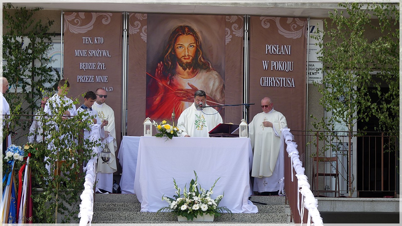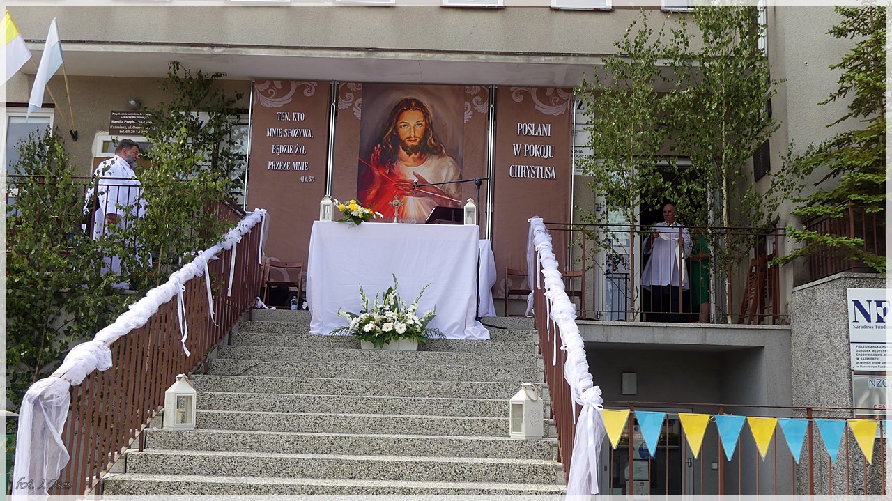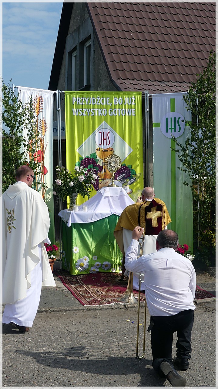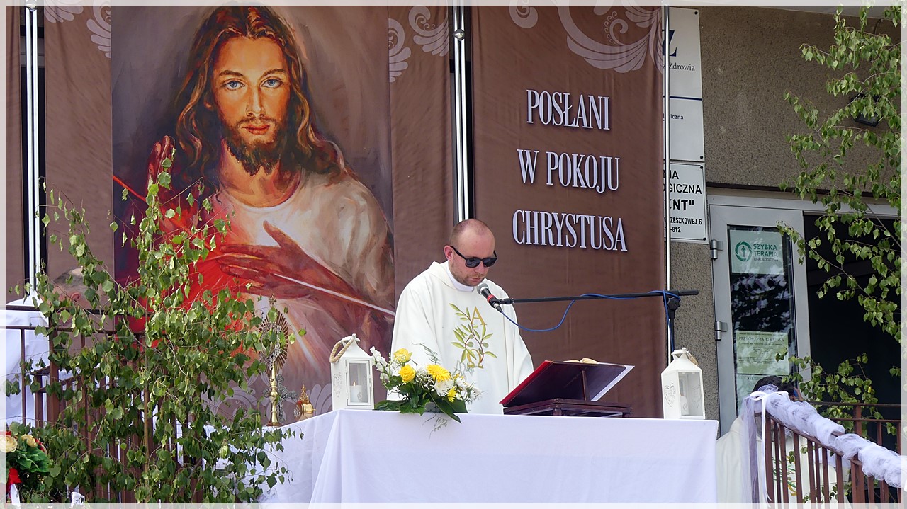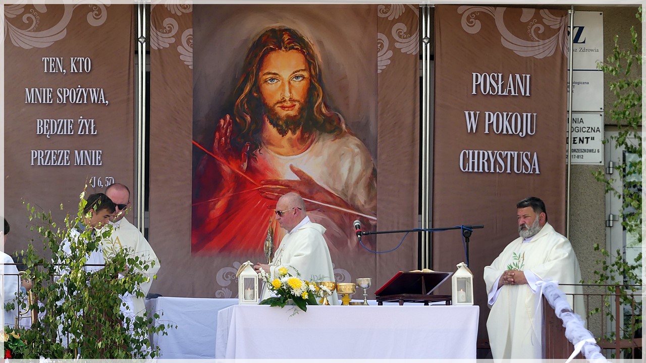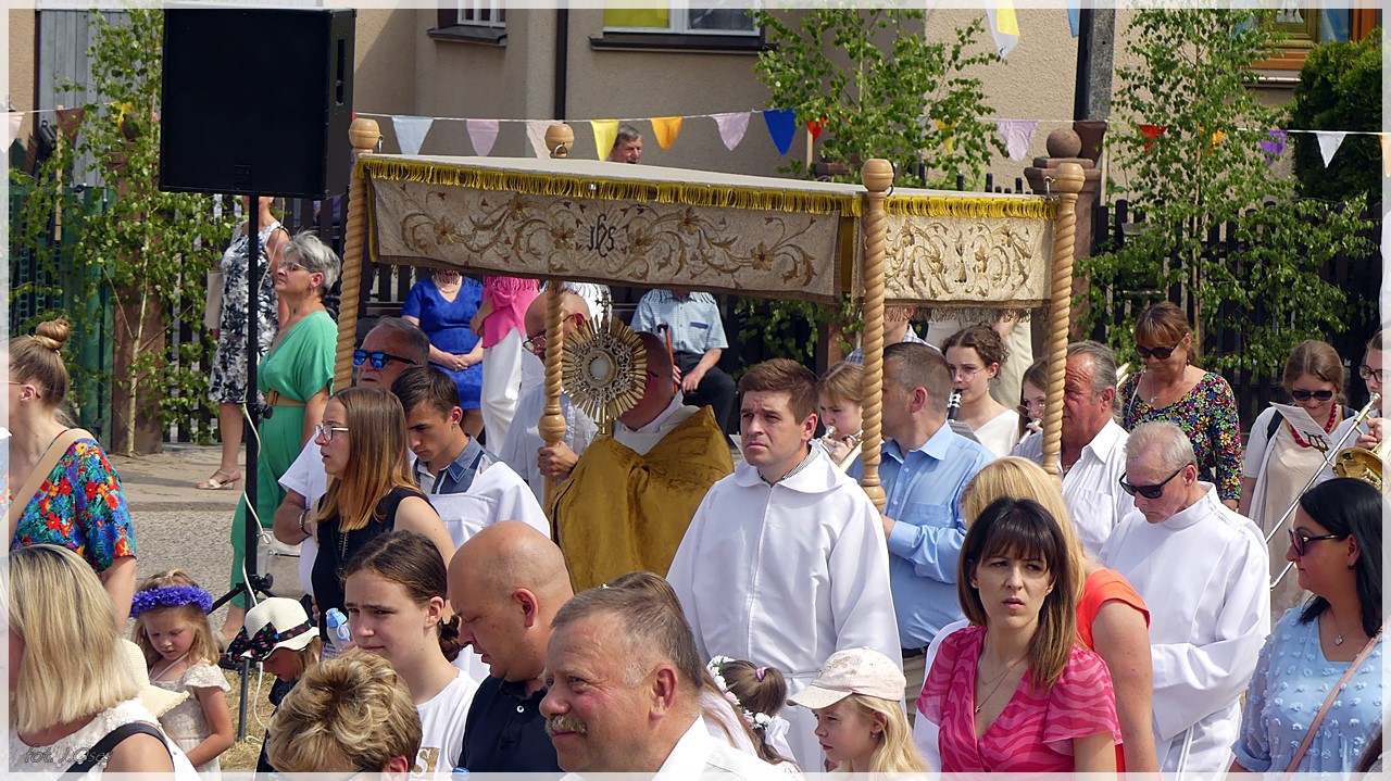 Tradycyjna procesja eucharystyczna do czterech ołtarzy przeszła ulicami Kaźmierza. Przy czwartym ołtarzu zbudowanym przy naszej przychodni odprawiona została uroczysta Msza św. koncelebrowana. Po mszy wierni w procesji udali się do kaźmierskiej świątyni.