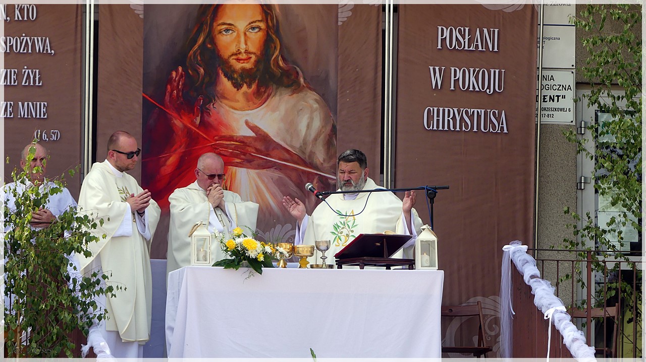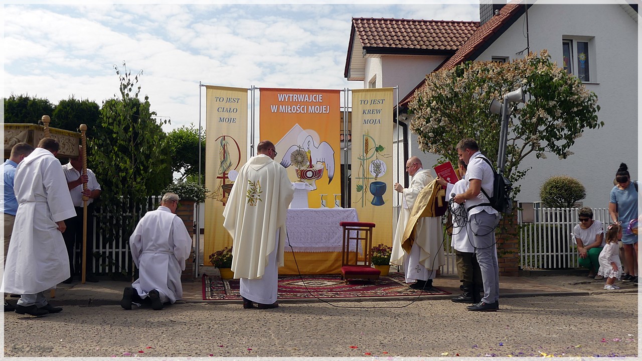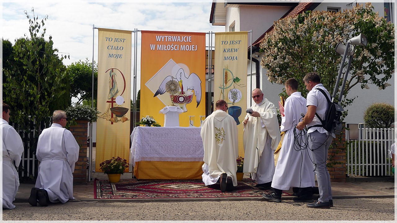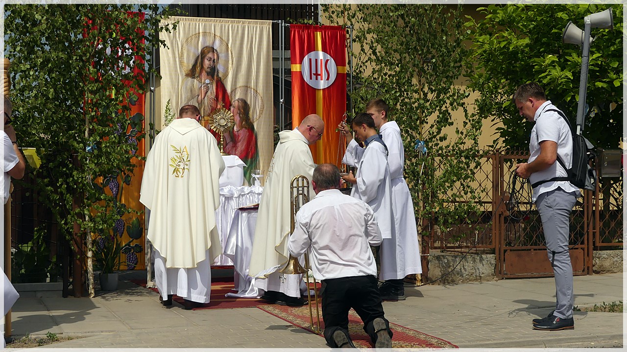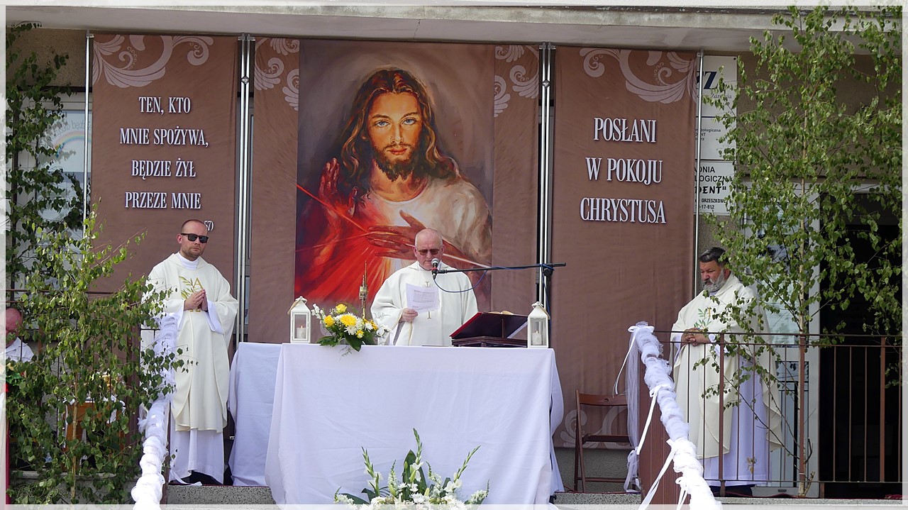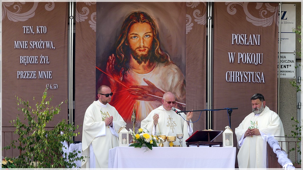 Tradycyjna procesja eucharystyczna do czterech ołtarzy przeszła ulicami Kaźmierza. Przy czwartym ołtarzu zbudowanym przy naszej przychodni odprawiona została uroczysta Msza św. koncelebrowana. Po mszy wierni w procesji udali się do kaźmierskiej świątyni.