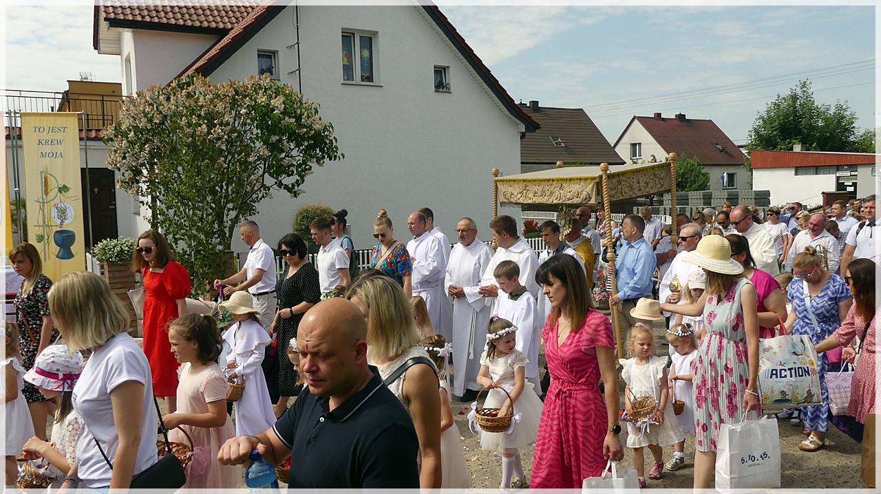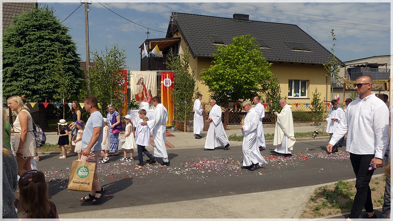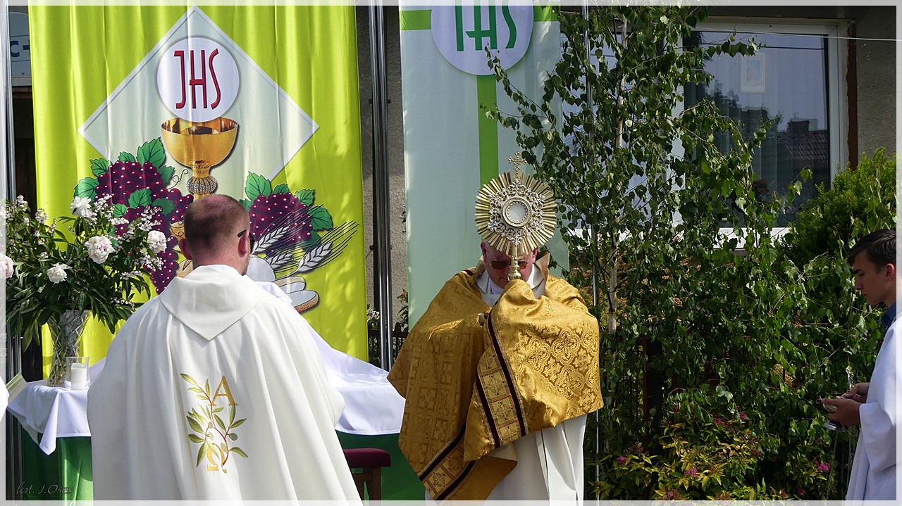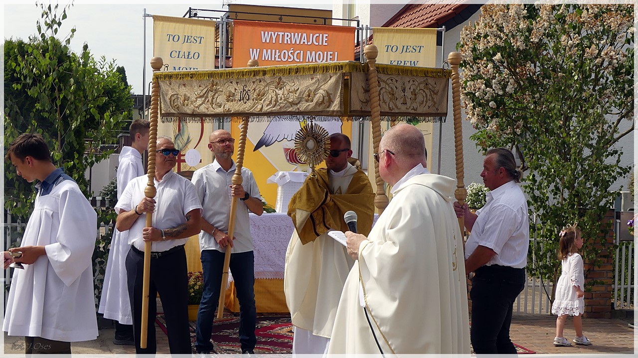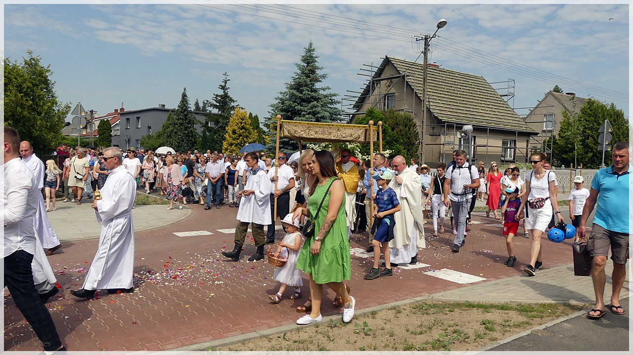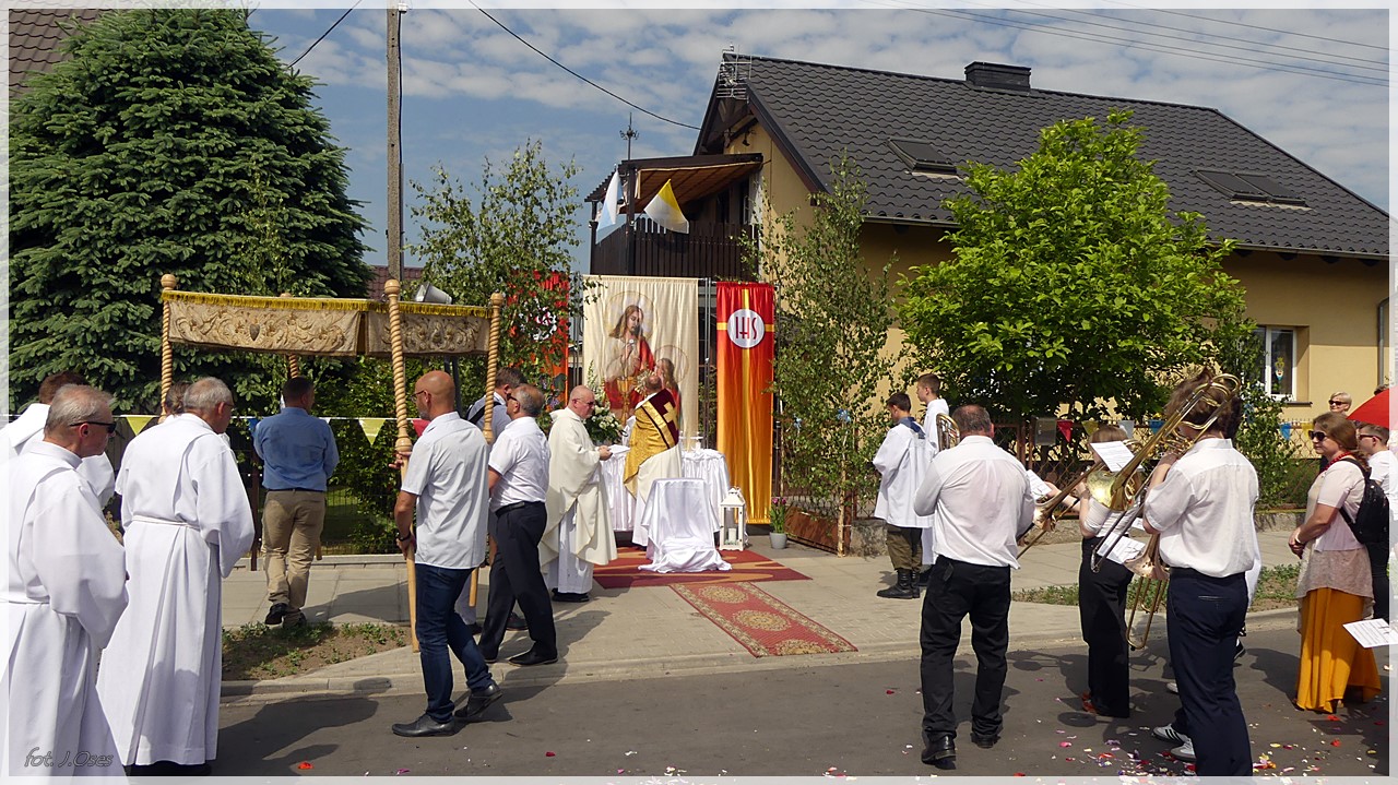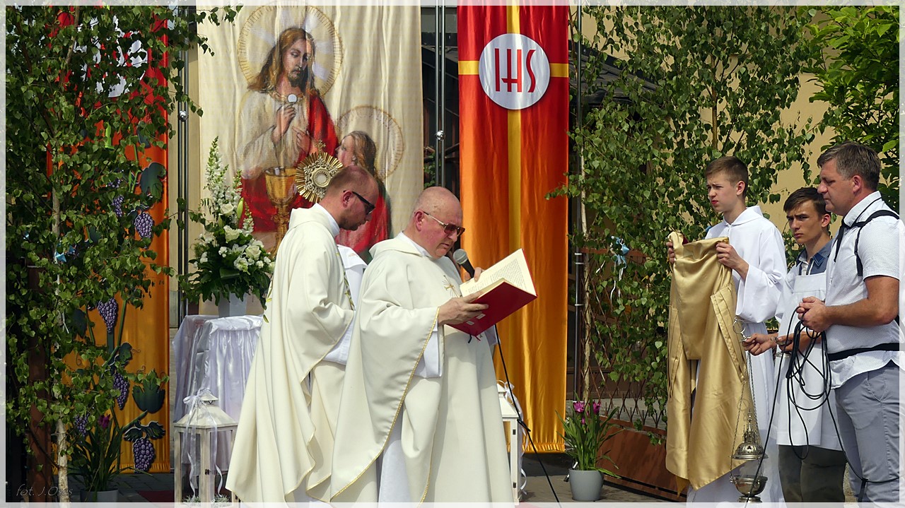 Tradycyjna procesja eucharystyczna do czterech ołtarzy przeszła ulicami Kaźmierza. Przy czwartym ołtarzu zbudowanym przy naszej przychodni odprawiona została uroczysta Msza św. koncelebrowana. Po mszy wierni w procesji udali się do kaźmierskiej świątyni.