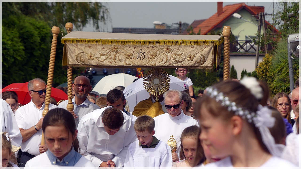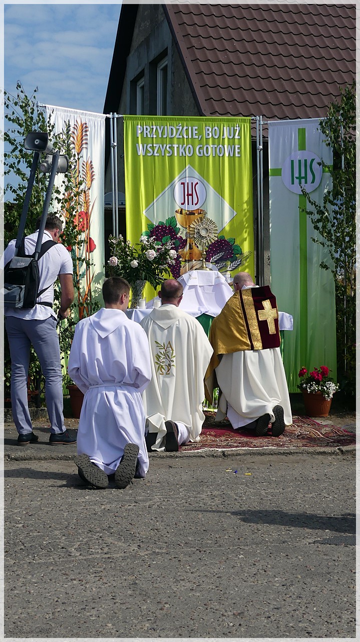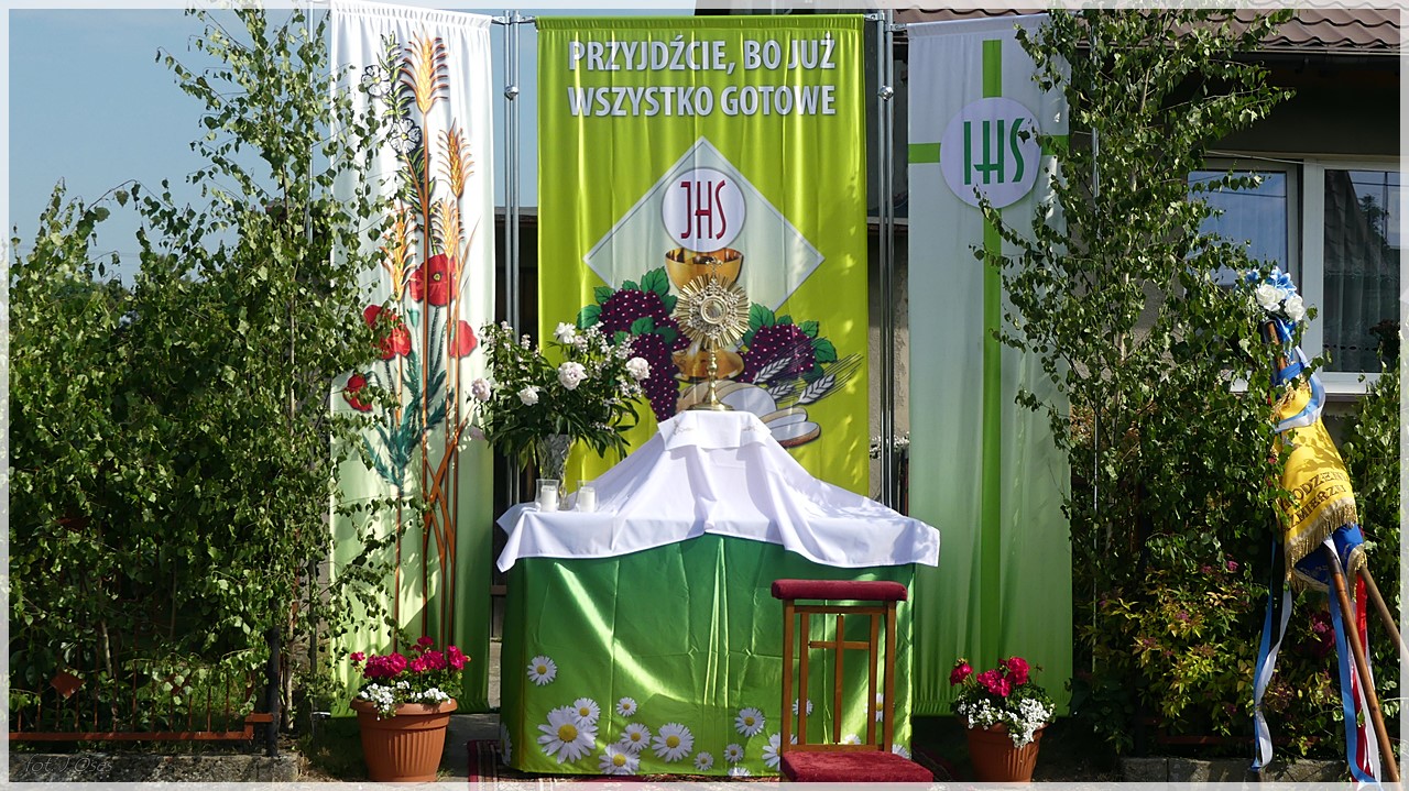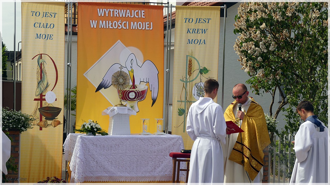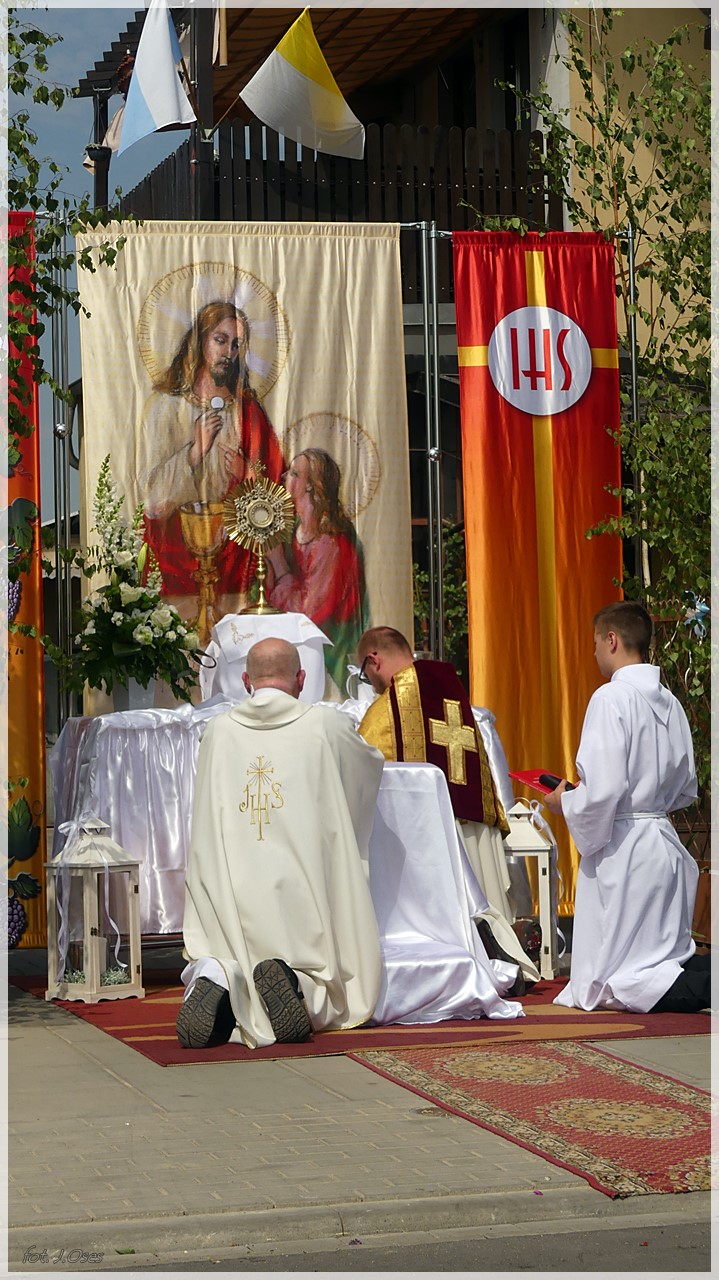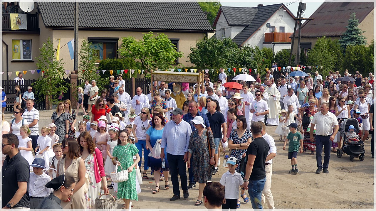 Tradycyjna procesja eucharystyczna do czterech ołtarzy przeszła ulicami Kaźmierza. Przy czwartym ołtarzu zbudowanym przy naszej przychodni odprawiona została uroczysta Msza św. koncelebrowana. Po mszy wierni w procesji udali się do kaźmierskiej świątyni.
