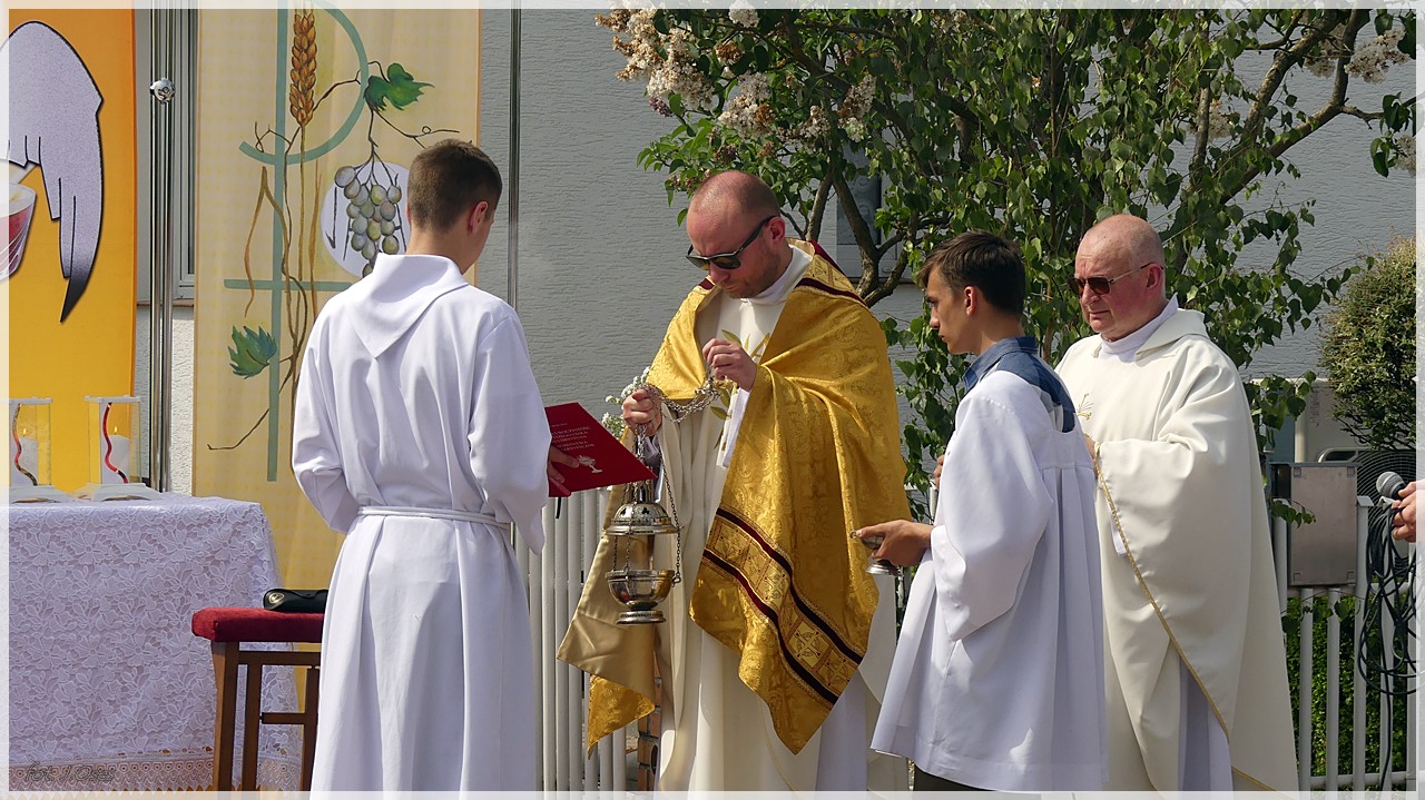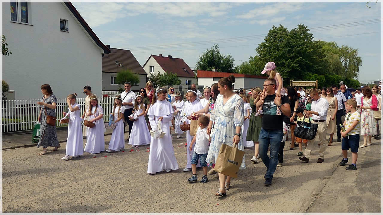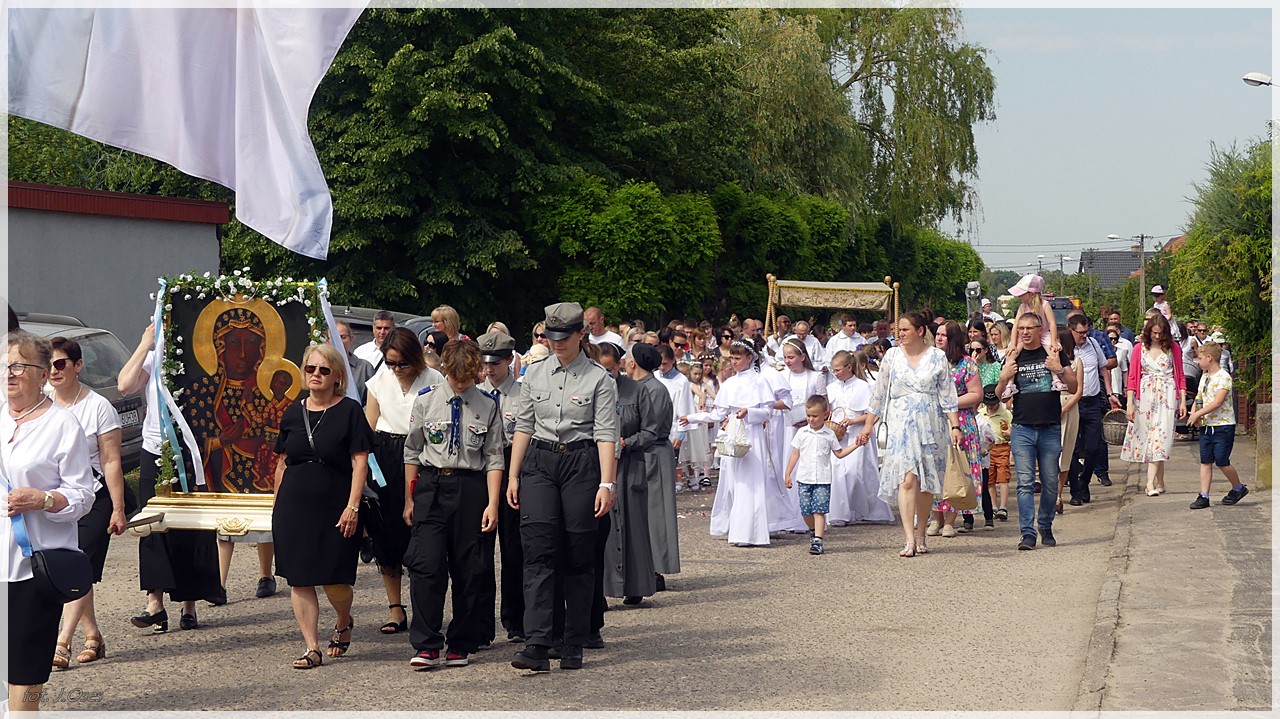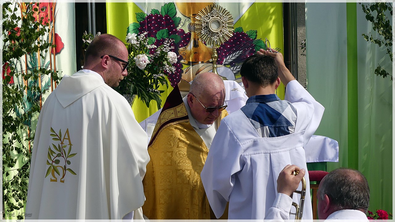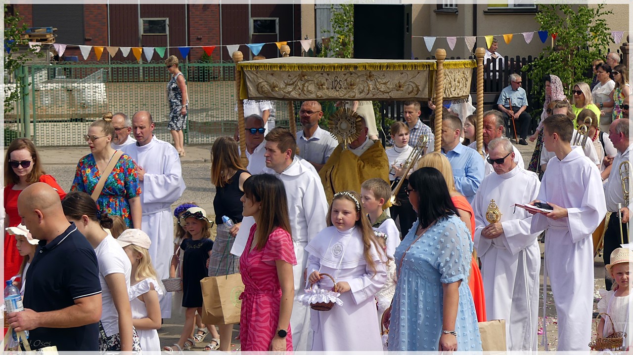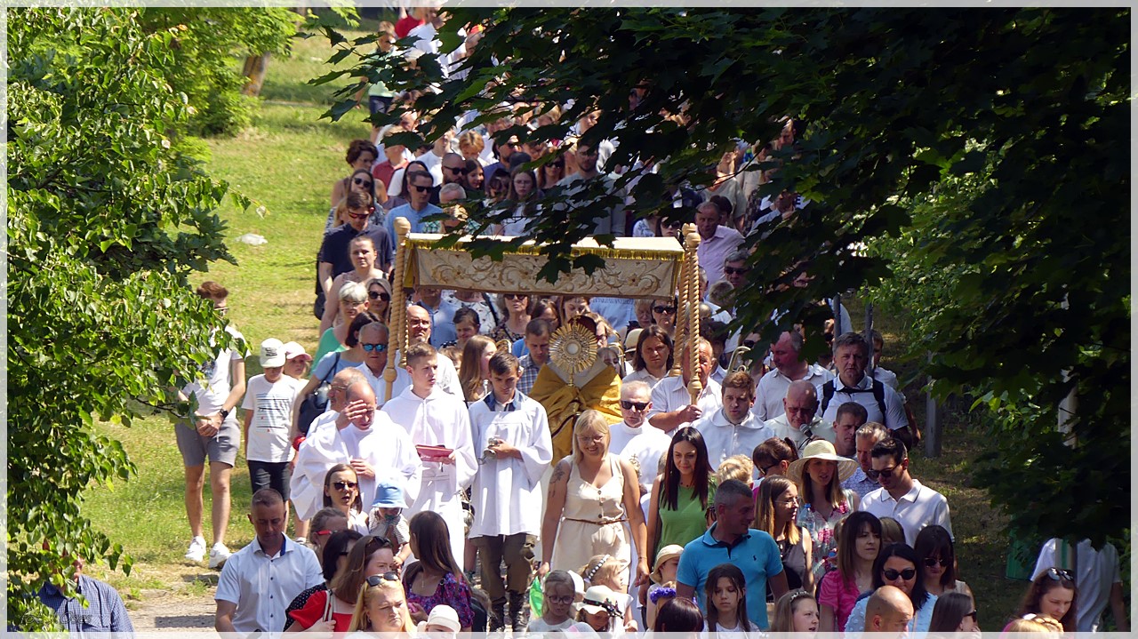 Tradycyjna procesja eucharystyczna do czterech ołtarzy przeszła ulicami Kaźmierza. Przy czwartym ołtarzu zbudowanym przy naszej przychodni odprawiona została uroczysta Msza św. koncelebrowana. Po mszy wierni w procesji udali się do kaźmierskiej świątyni.