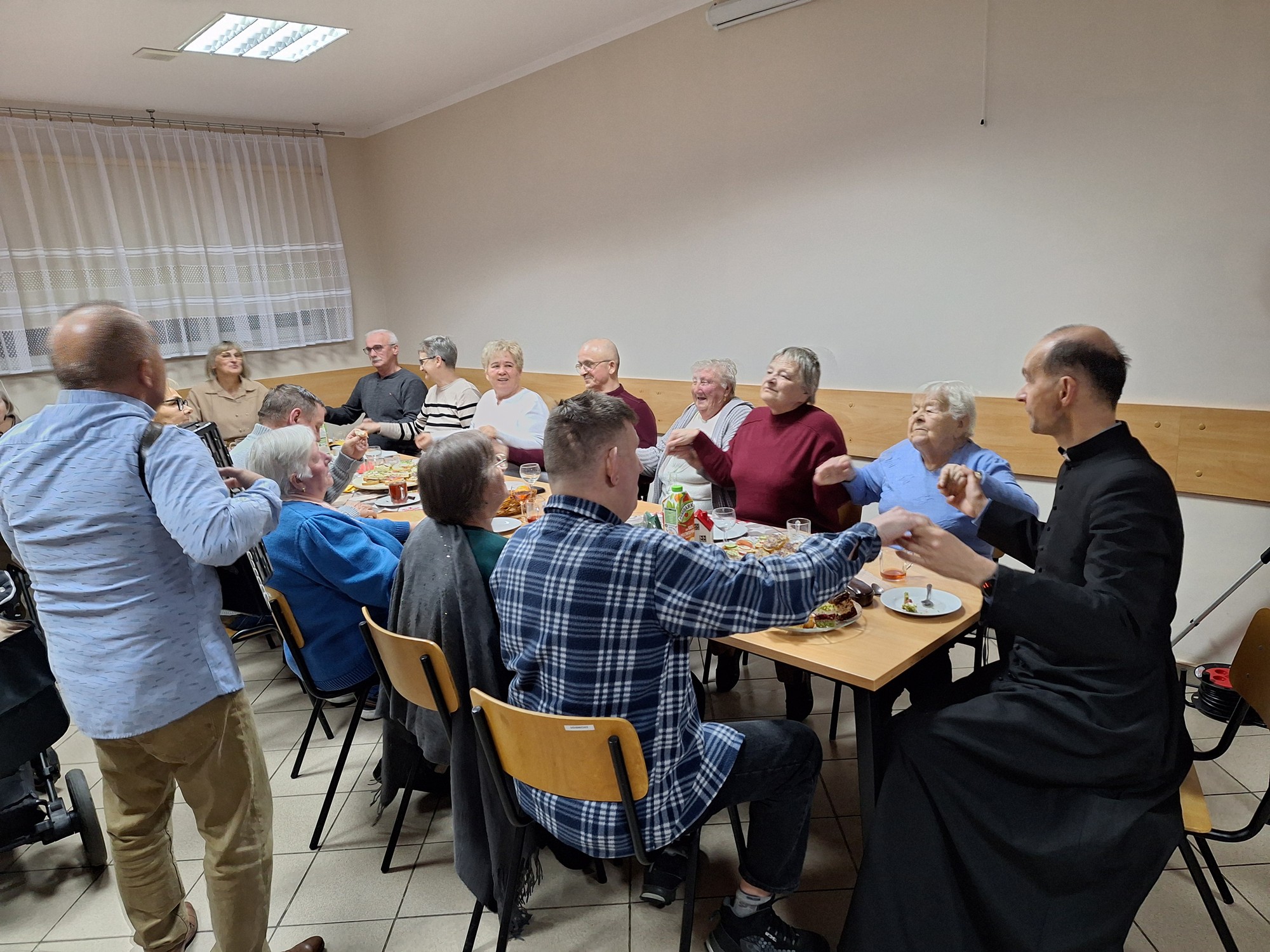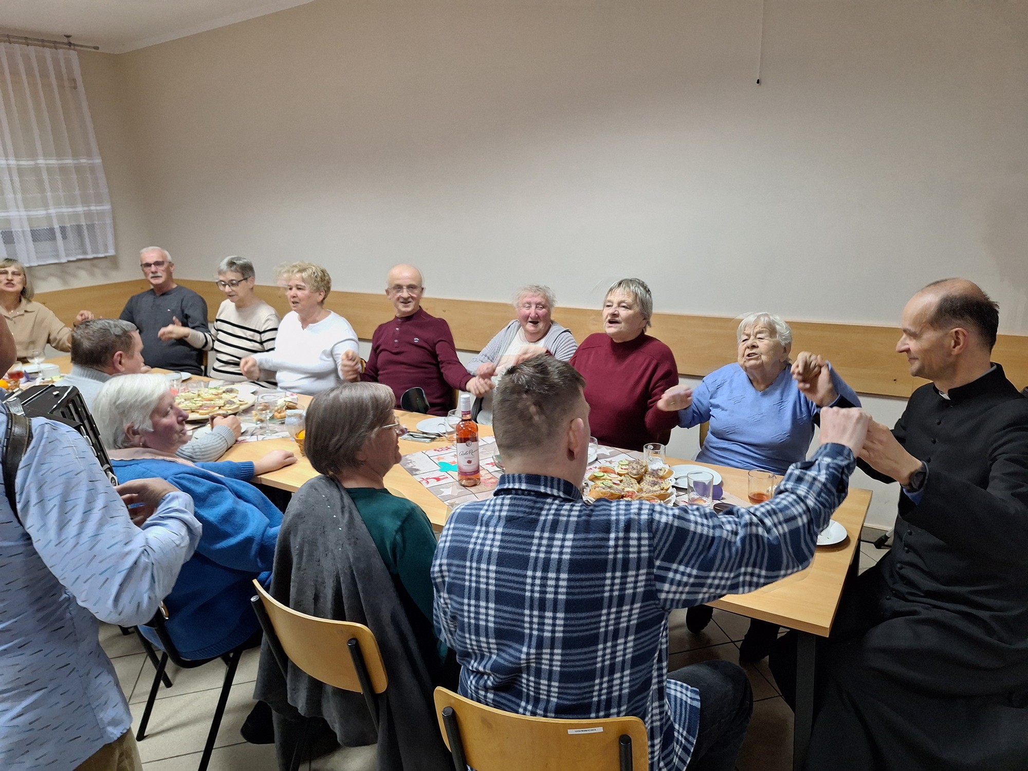 Tym razem spotkanie kolędowe odbyło się w świetlicy wiejskiej przy Remizie Strażackiej w Chlewiskach. Spotkanie w łączności z dniem Seniora. Miła atmosfera połączona śpiewem kolęd i piosenek biesiadnych. Była możliwość poznania z bliska nowych parafian.