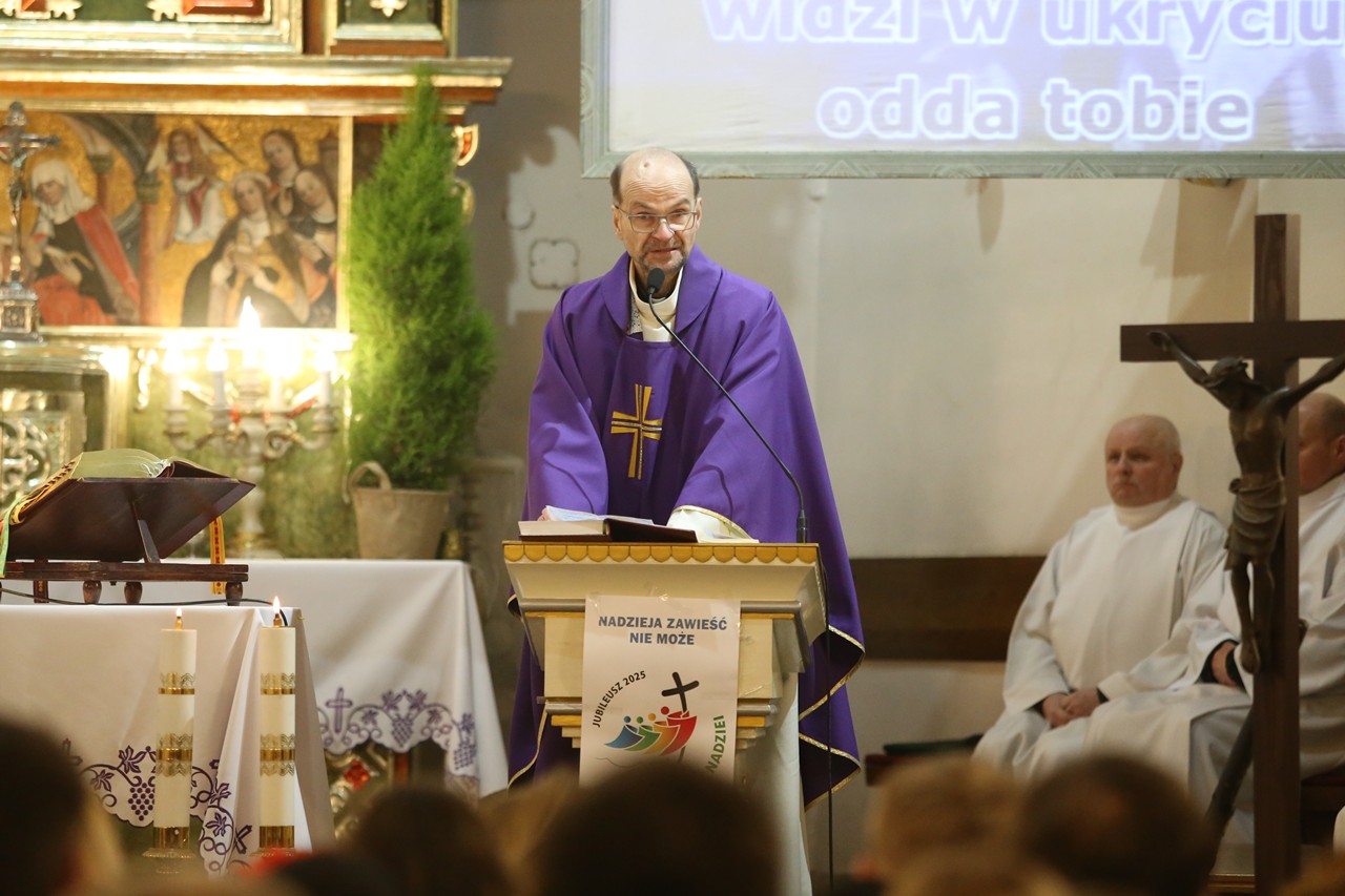 W Popielec tradycyjnie uczestniczyliśmy w Liturgii Pokutnej z obrzędem posypania głów popiołem. Zabrzmiały kolejny raz słowa z Biblii: "Pamiętaj człowiecze, że prochem jesteś i w proch się obrócisz" a także "Nawracaj się bracie i siostro i wierz w Ewangelię". Na trzech Mszach świętych (razem ok. 700 osób) słuchało Słowa Bożego, przyjmując postawę wiary, aby się zmieniać. Każdy został zaproszony, żeby zrobić postanowienie na Wielki Post od razu. Po drugie: połączyć to z wysiłkiem duchowym i cielesnym, przyjmując do wiadomości, że "Nie ma, że się nie da". Po trzecie: zacząć stawać się "zaczynem" dla pogańskiego świata, odświeżając Ewangeliczne ideały. I wreszcie po czwarte: zaprosić do swego życia mistrza olimpijskiego spośród świętych np. Carlo Acutisa (staramy się o relikwie). Dobrego, świętego Wielkiego Postu!